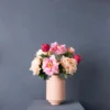 Wie houdt er niet van de romantiek van pioenrozen? Als deze klassieke bloem ook jouw favoriet is, creëer je moeiteloos een betoverende sfeer met dit levensechte boeket in een poederkleurige vaas. Nous l’adorons!