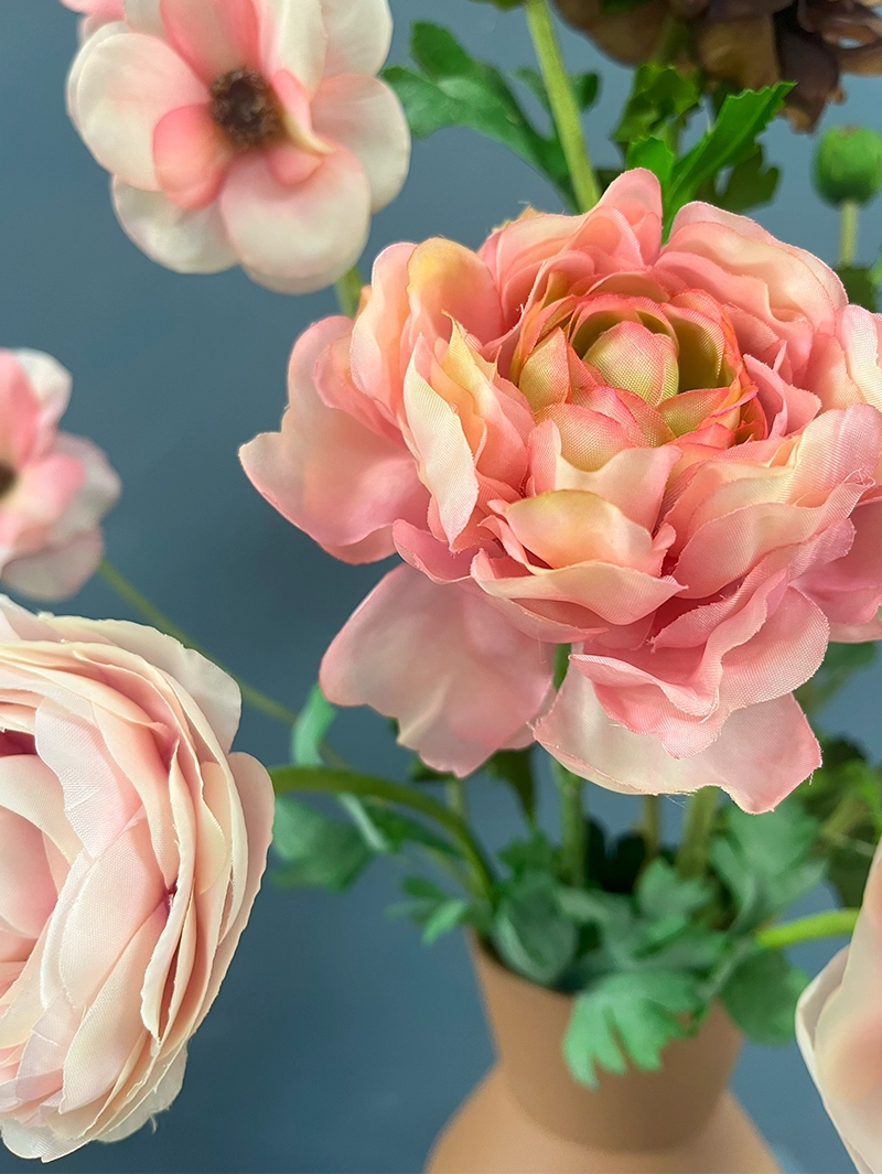 Met deze Mono Ranunculus haal je alle verschillende soorten ranonkels voor altijd in huis: de perfect ronde Asiaticus, de speels gegolfde Pon-Pon, de prachtige lentebloesem en de verfijnde, enkelbloemige Butterfly. Een blijvende blikvanger die de pracht van de lente laat stralen – tijdloos, kleurrijk en vol karakter.